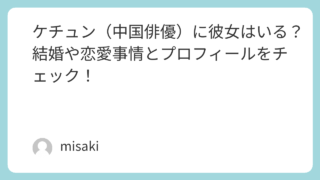 中国の若手俳優の中でも、近年特に注目を集めている存在といえばケチュン(趙柯淳)さんです。端正な顔立ちと高い演技力で人気が急上昇中の彼ですが、SNSでは「ケチュンって彼女いるの?」「恋愛してるのかな?」といった声も多く見られます。今回は、そん...